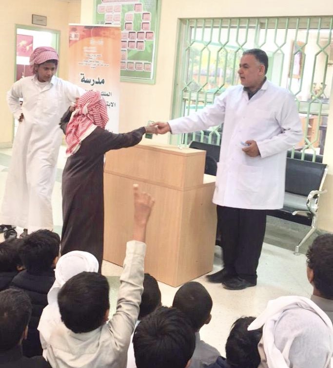 في إطار حملة تنفيذ المبادرة الوطنية للوقاية من تسوس الأسنان في صحة الرياض ، زار فريق طب الأسنان بمستشفى الخاصرة العام إلى مدرسة الملك عبدالعزيز الابتدائية والمتوسطة لتوعية طلاب المدرسة وإرشادهم بوقاية وصحة الفم والأسنان.
