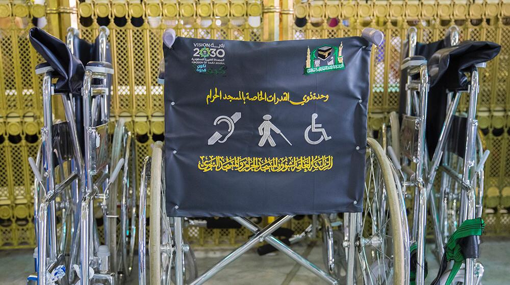 وحرصاً من الرئاسة بتوفير أعلى سبل الراحة لهذه الفئة الغالية على قلوبنا قامت بتخصيص أبواب ومشايات ومسارات خاصة برموز وعلامات واضحة لتسهيل حركتهم وتنقلهم وتجهيز مصليات مجهزة بجميع احتياجاتهم ذوي الإعاقة يعمل عليها موظفين تم تدريبهم على التعامل مع هذه الفئة الغالية.