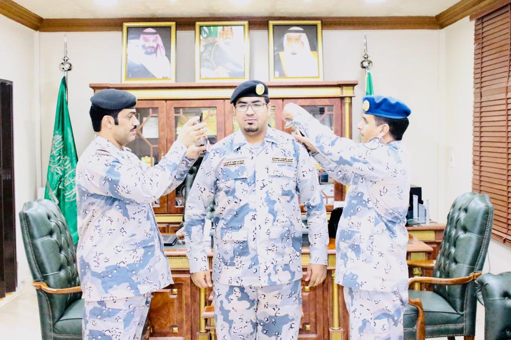 وكانت مراسم تقليد الرتبة الجديدة بحضور سعادة العقيد مثيب بن محمد العلياني مساعد قائد قطاع حرس الحدود بمحافظة القنفذة.