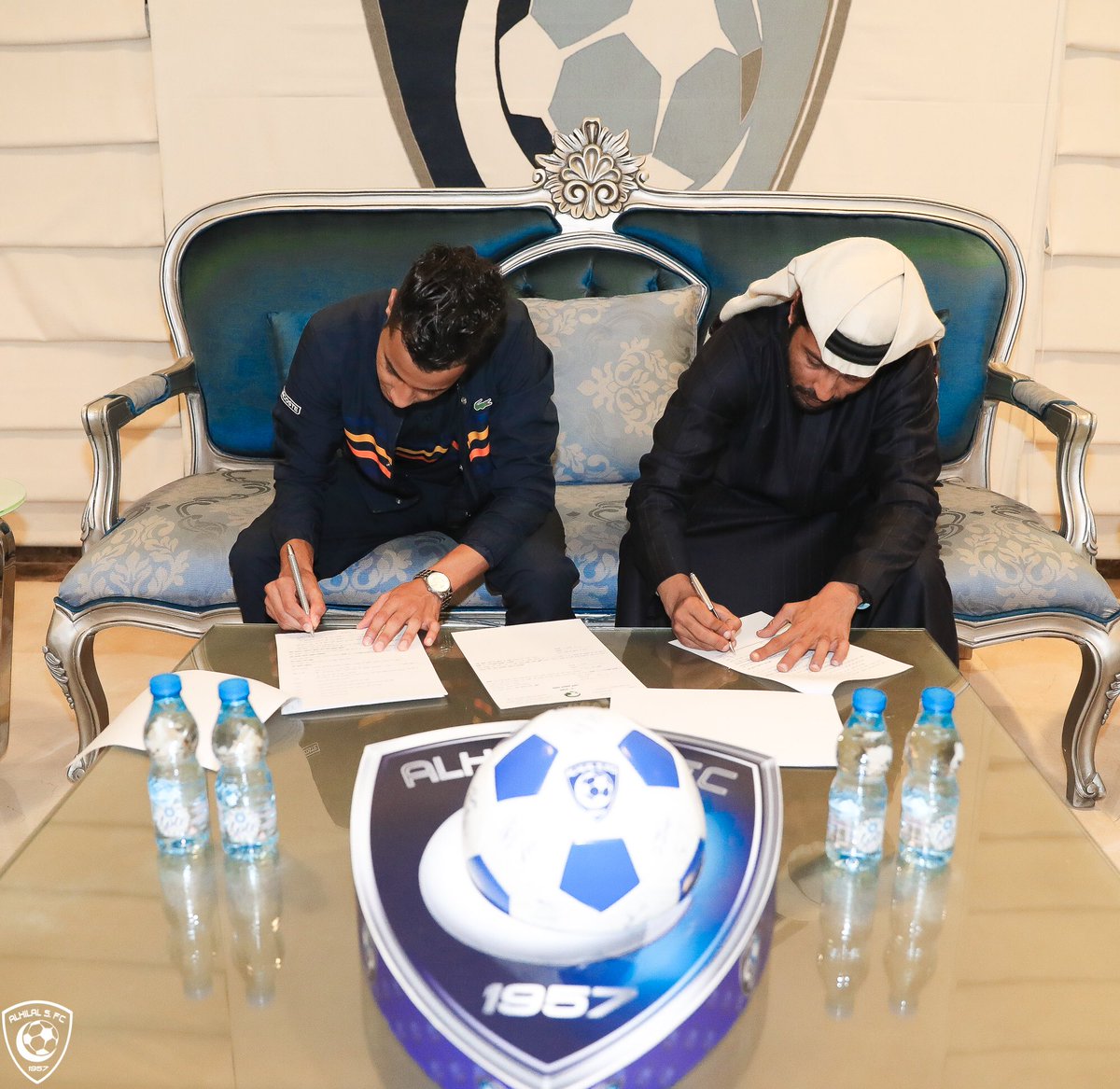 وأعلن الهلال على حسابه الرسمي بموقع التواصل الاجتماعي تويتر عن توقيع العقد الجديد مع اللاعب بحضور رئيس النادي الأمير محمد بن فيصل، وأرفقت إدارة الزعيم صوراً من مراسم التوقيع.
