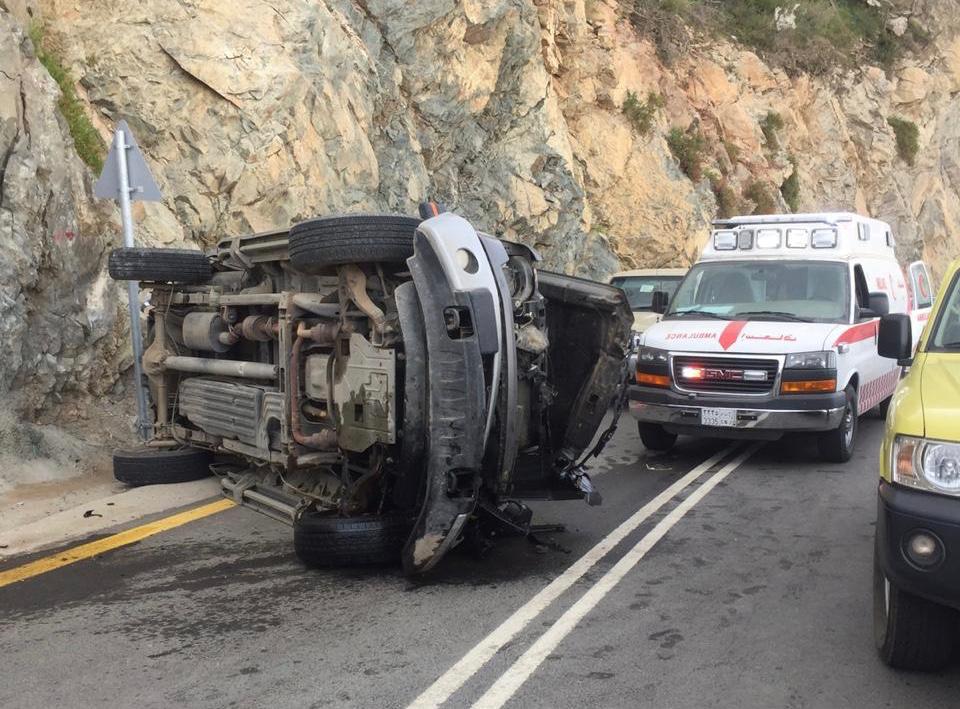 تلقت غرفة عمليات هيئة الهلال الأحمر بمنطقة الباحة بلاغاً عن حادث انقلاب في تمام الساعة 15:39 بعد عصر اليوم السبت على الرقم الموحد 997 الموقع عقبة الملك خالد وصرح الناطق الإعلامي للهلال الأحمر السعودي بمنطقة الباحة عماد بن منسي صالح الزهراني أنه تم توجيه فرقة إسعافية من الهلال الأحمر للموقع وعند وصول أول فرقة اتضح وجود إصابة لشخص من الجنسية الاسيويه وقال الزهراني تم التعامل مع الإصابة اسعافياً بالموقع ووصفت الإصابة بالخطيرة ومن ثم تم نقلها عن طريق إسعافات الهلال الأحمر لمستشفى الملك فهد بالباحة .