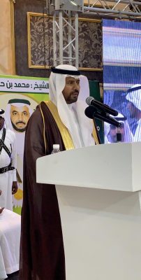 تلاه بعد ذلك كلمة المحتفى به الشيخ الاستاذ محمد بن حمد العمري أبدى فيها سعادته معبراً عن شكره وعرفانه لكل من سعى وراء هذا التكريم.
