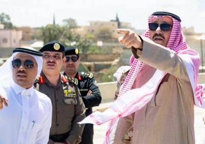 وبين سموه أنه تم خلال الزيارة الوقوف على أربعة مشروعات للطرق والأمانة ، شملت جسر تقاطع مستشفى الملك فهد بالباحة ، والقرية التراثية بالقرى التي تضم المدرج الرومان ، وعقبة طريق الحسام ومنتزه الحسام ببلخزمر ، الاطلاع على سير العمل في تلك المشروعات الجاري على أكمل وجه ، مفيداً سموه بأن مشروع طريق الحسام الذي تم تمهيده ليختصر ما يقارب 3 ساعات إلى 4 كيلو مترات من قرية الجماجم وعنازة وصولاً للقطاع التهامي ، وسيتم التفاهم مع وزارة النقل للسفلتة وتوفير أدوات السلامة ، إلى جانب قيام الأمانة بتنفيذ منتزه الحسام .