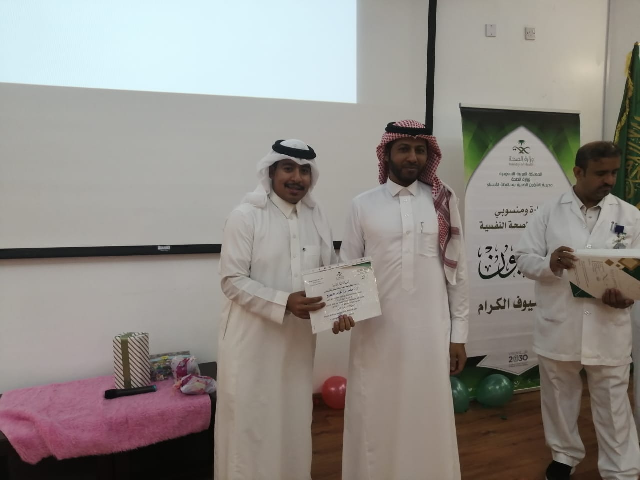 أقام مستشفى الصحة النفسية بالقاعة الكبرى بالمستشفى وبحضور سعادة مدير المستشفى الدكتور أنور بن حمد المسعد ونائب مدير الخدمات الطبية الدكتور أحمد المظفر الحفل السنوي لنزلاء المستشفى بمناسبة عيد الأضحى المبارك