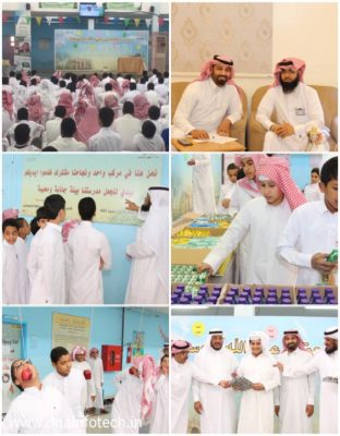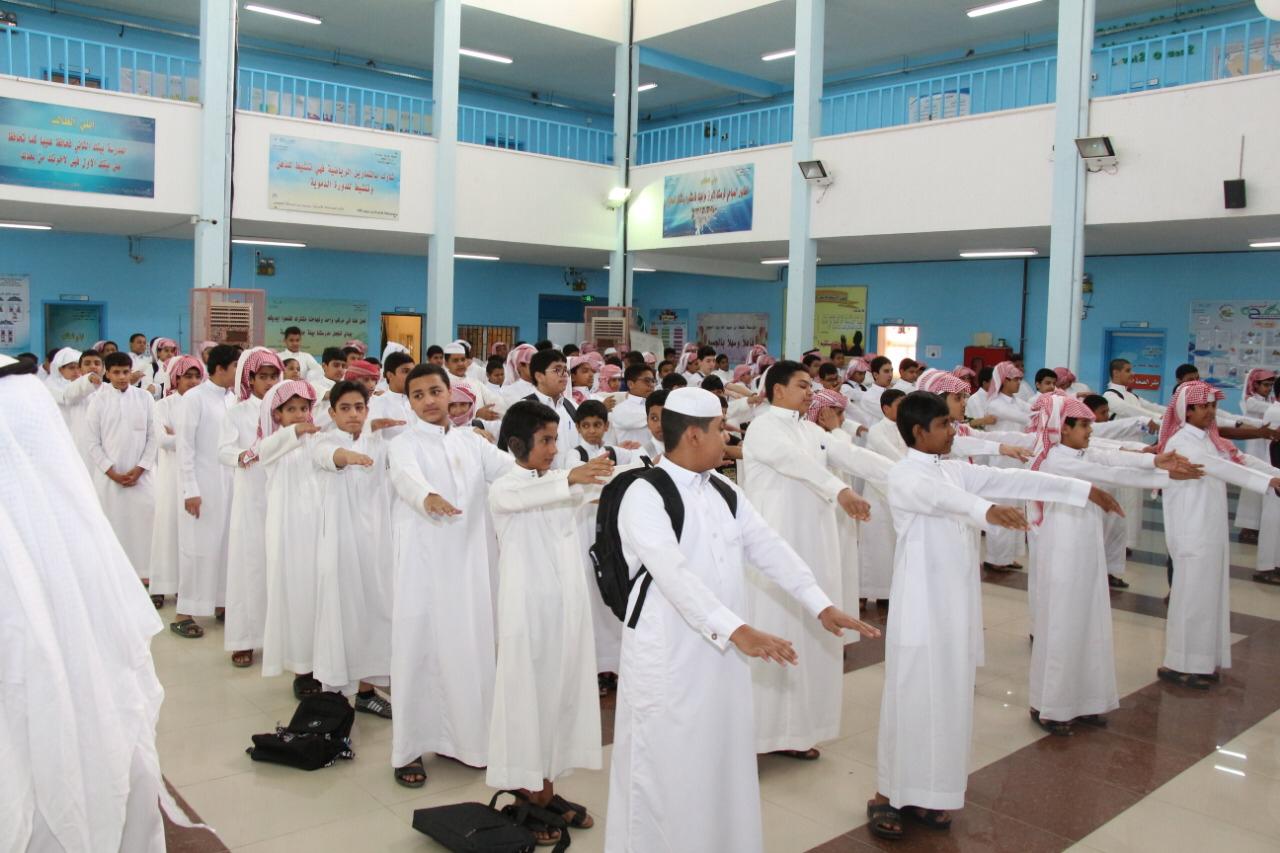 واستهل البرنامج بالاصطفاف الصباحي والتمارين الرياضية ، ثم توزيع الطلبه على الفصول واستلام الكتب الدراسية ، تلى ذلك جولة تعريفية لطلاب الصف الأول المتوسطة لمرافق المدرسة برفقة المرشد الطلابي الأستاذ صلاح السليمان .