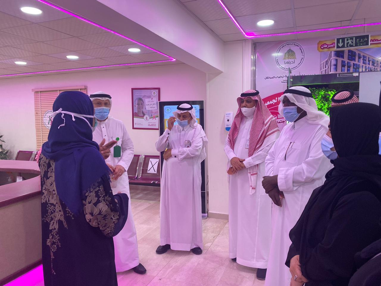 هذا وحضر اللقاء كلاً من: د.سميرة السليماني استشارية أشعة الثدي، د.أمل بيحاني استشارية علاج الأورام، د.زكرياهوساوي استشاري علاج الأورام، د. ماجد الجاهل استشاري علاج الأورام، د.مروة الصاعدي منسقة برنامج الكشف المبكرعن سرطان الثدي، د.مهند مساعد المدير العام للصحه العامة، د.حسين البديوي مدير إدارة البرامج الصحية.