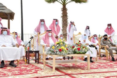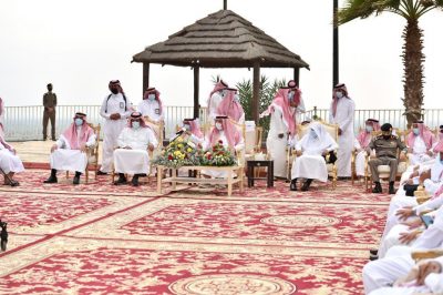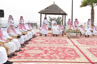 والتقى سموه في بداية الزيارة بمشايخ وأهالي محافظة الدرب ، وذلك باستراحة البلدية .