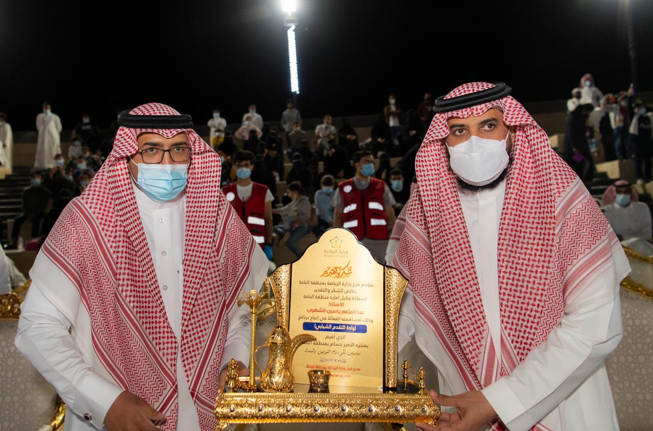 اختتم مساء هذا اليوم البرنامج الرياضي الشبابي لزوار منتزه الحسام والذي نفذه مكتب وزارة الرياضة بمنطقة الباحة بحضور سعادة وكيل امارة منطقة الباحة الاستاذ عبدالمنعم بن ياسين الشهري وفي نهاية الفعاليات سلم سعادته المتسابقين عدد من الجوائز ، ثم اطلع على المعرض التوعوي المصاحب والذي نظمته ادارة مكافحة المخدرات بمناسبة اليوم العالمي للمخدرات للتوعية من اضرار المخدرات ومخاطرها.
