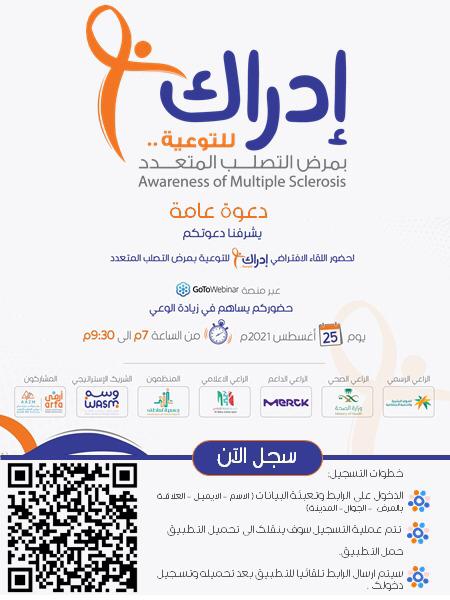 بإشراف وزارة الموارد البشرية والتنمية الاجتماعية ، ووزارة الصحة، وبرعاية من جمعية تعاطف للخدمات الصحية ومشاركة جمعية أرفى وجمعية عزم، يسر جمعية وسم للتصلب العصبي المتعدد بمحافظة جدة دعوتكم لحضور الملتقى الافتراضي ”إدراك” والذي سوف يقام يوم غد الأربعاء 17 محرم 1443 هـ الموافق 25 أغسطس 2021 م، وذلك عبر منصة GotoWebinar والتي تهدف لتوعية المجتمع بمرض التصلب المتعدد.