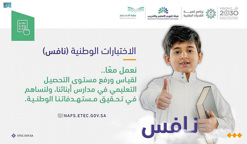 ودعت هيئة تقويم التعليم أولياء الأمور والهيئة الإدارية والتعليمية في المدارس، والمعلمين والمعلمات إلى الدخول على موقع الاختبارات الوطنية “نافس” https://nafs.etec.gov.sa / ، للتعرف على الاختبارات الوطنية، والاطلاع على المحتوى التعريفي والتوعوي والأدلة الإرشادية، إضافة إلى الاستفادة من قنوات الهيئة الإلكترونية والخدمات الرقمية المتاحة والرقم الموحد (920033555)، ونموذج التواصل الإلكتروني الموجود على الموقع الإلكتروني للهيئة، وحساب العناية بالمستفيدين على تويتر@Eteccare، لتقديم الخدمات المساندة والإجابة عن جميع الاستفسارات