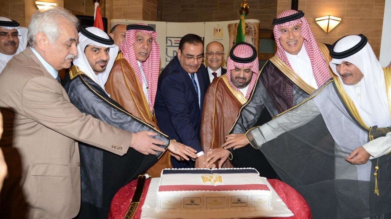 سعادة السفير القنصل العام : هشام فتحي محمد مصطفى كلمةً : أشاد فيها بالعلاقات الأخوية الراسخة والمتينة وعمقها بين البلدين الشقيقين جمهورية مصر العربية والمملكة العربية السعودية ، المنبعثة من عمق العلاقات وقدمها وازلها واشاد بتوجه حكومة المملكة العربية السعودية بقيادة خادم الحرمين الشريفين الملك سلمان بن عبدالعزيز وسمو ولي عهده الامين الامير محمد بن سلمان “حفظهم الله” بتوطيد العلاقات مع جمهورية مصر العربية ، وأشاد بالتطور الاقتصادي والنمو الاقتصادي الذي الذي يربط بين المملكة ومصر وكما اشاد سعادة السفير بالدعم الذي تلقاه دائمًا مصر من أشقائها بالخليج وبالأخص وعلى رأسهم المملكة العربية السعودية بالعلاقات المتينة الراسخة. واشاد بالجالية المصرية ، ووجه إليهم كلمة في الاحتفال يوم٢٣ يوليو تلك الثورة التي اعادة الحرية واعادة العدالة الإجتماعية واعادة بناء جيش وطني قوي لجمهورية مصر العربية يعتز به الجميع في الحاضر وهو السند وهو من العوامل الثابتة والركائز الداعمة للقوى في الوطن العربي الشقيق ، وكما تمنى للملكة كل النمو والازدهار ولمصر الثبات والاستقرار وللوطن العربي كل القوة في تضامنهم واتحادهم لاعلى كلمة الوطن العربي وجعله قوياً سديدً “باذن الله تعالى”