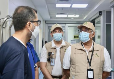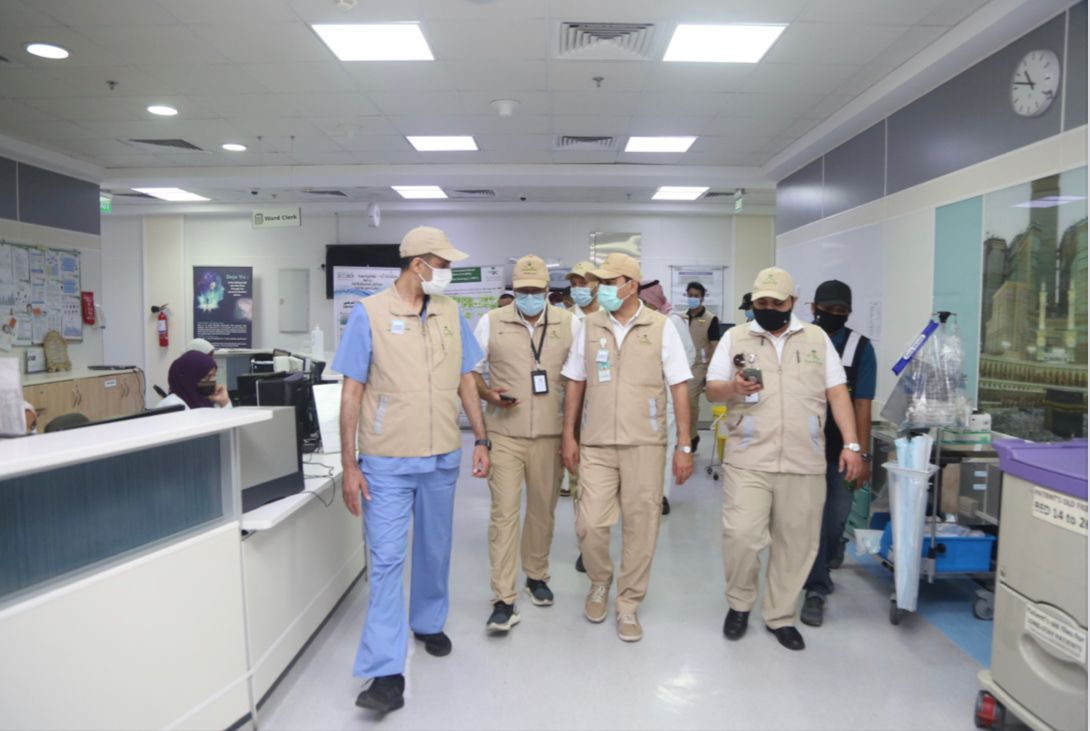 تفقد وكيل وزارة الصحة للصحة العامة ورئيس لجان الحج والعمرة التحضيرية الدكتور هاني جوخدار، اليوم (الأحد)، مستشفيات مكة والمشاعر المقدسة، حيث زار أقسام الطوارئ والعناية المركزة بمستشفى النور التخصصي ومستشفى الملك فيصل ومستشفى الطوارئ بمنى للوقوف على استعدادات الحج المقدمة وإجراءات الصحة العامة ومكافحة العدوى.