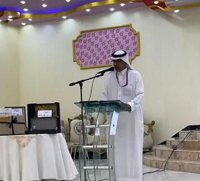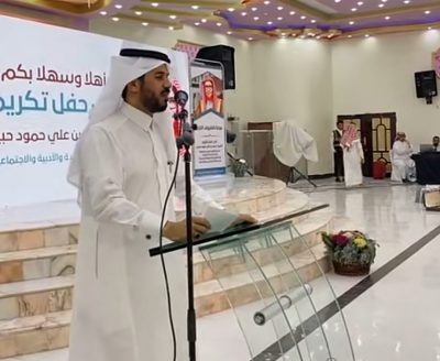 ثم كلمة للشاعر الأستاذ علي بن محمد عبدالله الحازمي، والتي تحدث فيها عن دور المحتفى به في دعم وتشجيع مواهب الطلبة وأنه أحد من شجعهم.