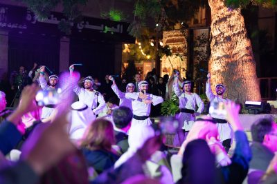 ثم شاهد سموه والحضور عرضاً تصويرياً بعنوان “قوافل”، تناول الطرق الحضارية القديمة، سواء التجارية منها أو طرق الحج، التي كانت تأتي من كل أنحاء العالم وتلتقي في شبه الجزيرة العربية وتجسد العرض في خمس لوحات، تتحدث عن طرق الحج بالجزيرة العربية، وبلاد الشام والعراق، وطرق آسيا، وطرق أفريقيا، واختتم بلوحة “العالم أجمع.. العالم معاً”، تمثلت في التقاء مجموعات تمثل البشرية في أرض الحجاز.