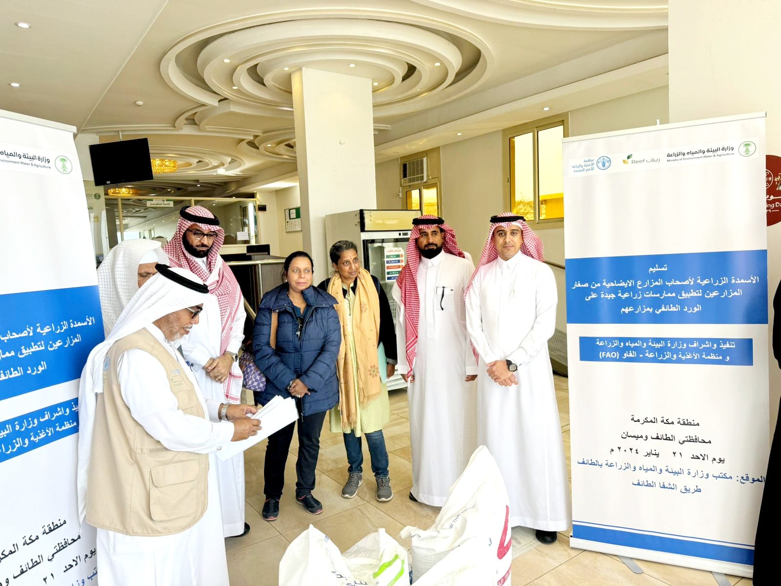 نفذ مكتب وزارة البيئة والمياه والزراعة بمحافظة الطائف، برنامج تسليم الاسمدة لمزارعي الورد الطائفي الايضاحية من صغار المزارعين وذلك بالتعاون مع برنامج التنمية الريفية الزراعية المستدامة “ريف” ومنظمة الأغذية والزراعة للأمم المتحدة “الفاو”.