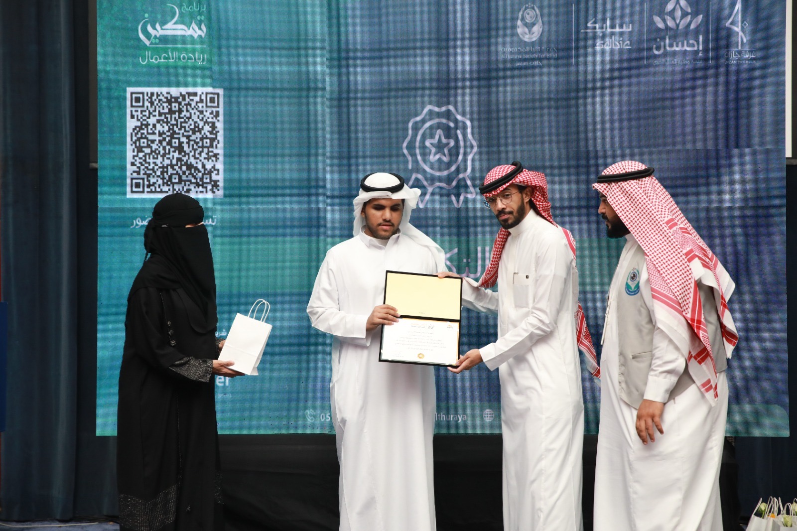 نظمت جمعية الثريا للمكفوفين بالمنطقة الحفل الختامي لبرنامج تمكين ريادة الأعمال وذلك على مسرح الغرفة التجارية بجازان. استهل الحفل بالنشيد الوطني ثم القرآن الكريم .