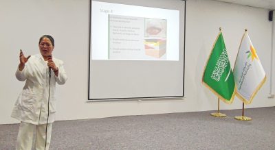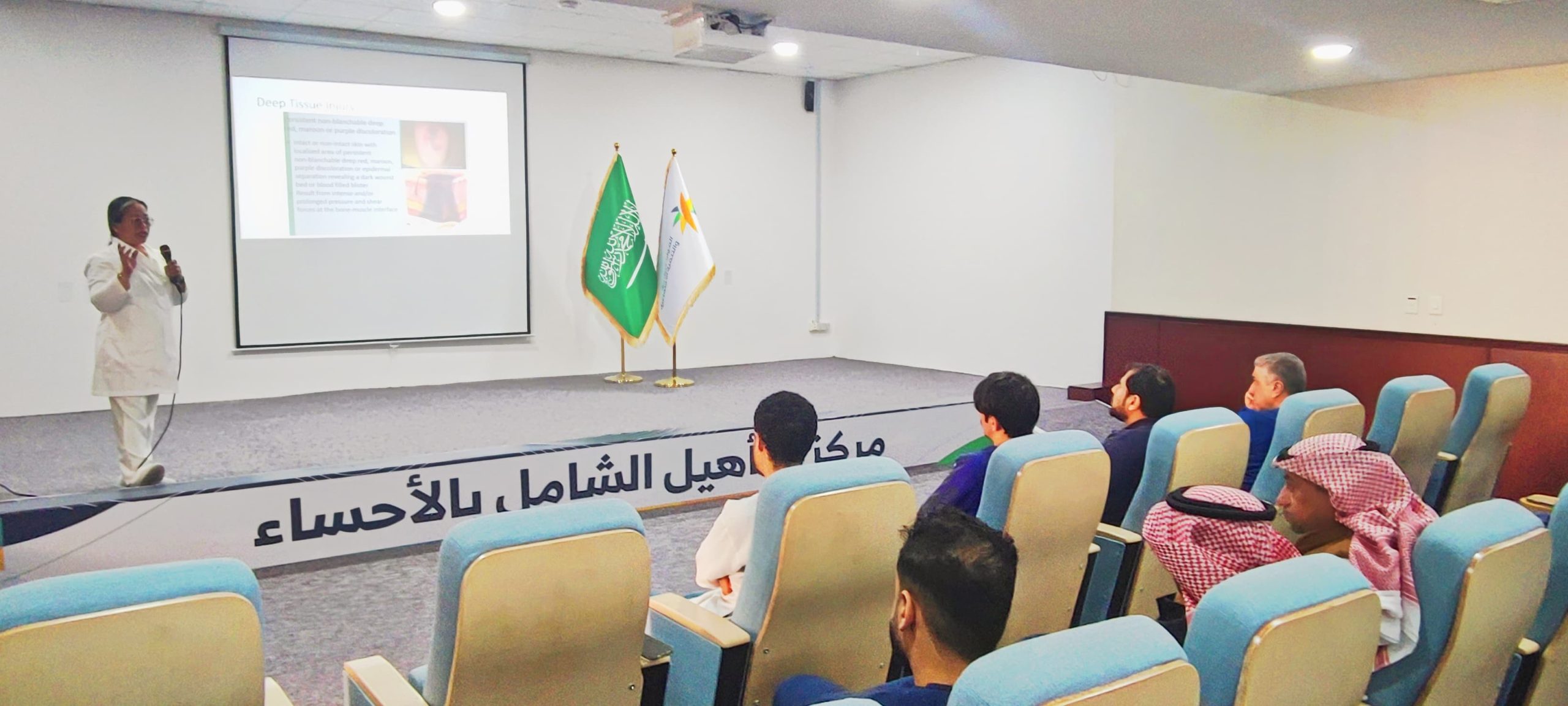 نظّم مركز التأهيل الشامل بالأحساء بالتعاون مع مستشفى الحرس الوطني بالأحساءفي تاريخ 21 يناير 2025م محاضرة تثقيفية صحية بعنوان “التقرحات السريرية وأثرها على ذوي الإعاقة”استهدفت منسوبي المركز العاملين في مجال رعاية المسفيدين من الاقسام الطبية .