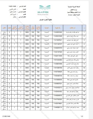 اعتمد مدير مدرسة ثانوية السليل بضمد الأستاذ طارق بن محمد داحش نتائج العشرة الأوائل والطلبة الناجحين للفصل الدراسي الثاني لعام 1446هـ.