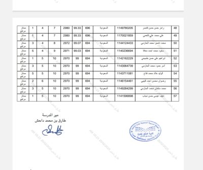 .وزف مدير المدرسة “الداحش” التهاني والتبريكات للعشرة الأوائل والناجحين وأولياء أمورهم، متمنياً لهم كل التوفيق والمزيد من النجاح.