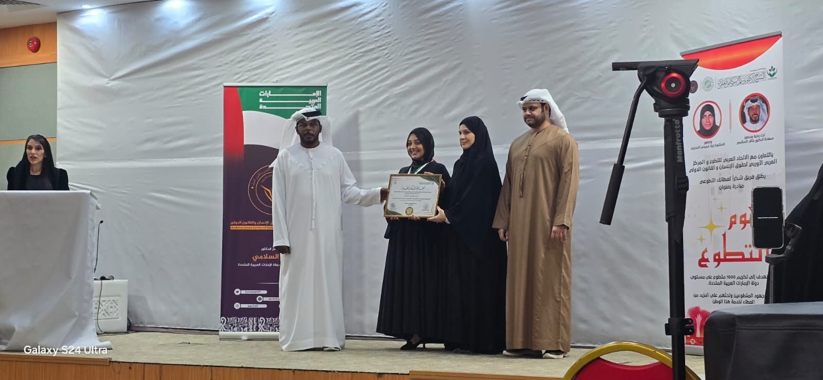 كما شارك في مراسم التكريم وتسليم المتطوعين شهادات وقلادات التكريم كل من الأستاذ سيف الرحمن أمير، رئيس فريق “شكراً لعطائك” التطوعي، والأستاذ حسن بوهزاع، رئيس الاتحاد العربي للتطوع، حيث عبّرا عن فخرهما واعتزازهما بما يقدمه المتطوعون من جهود تعزز العمل الإنساني والتنموي في المجتمع.