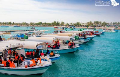وانطلقت المسيرة البحرية من مرسى خليج الجار بالواجهة البحرية بينبع الصناعية مرورًا بمركز اعداد القادة، ومن ثم إلى جزيرة النورس، قبل العودة إلى نقطة البداية.