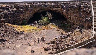 يُعدُّ كهف “أم جرسان” شمال المدينة المنورة أطول قناة أنبوبية بركانية معروفة في الجزيرة العربية، إذ يمتد لمسافة 1350 مترًا، بارتفاع 12 مترًا وعرض يقارب 45 مترًا.