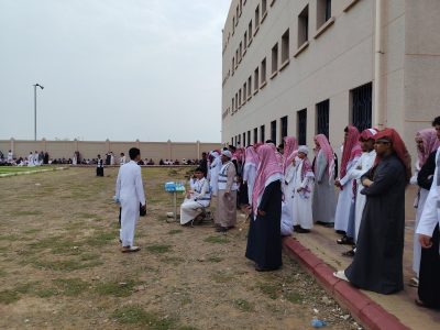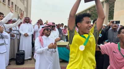 وتخللت المباراة النهائية مسيرة وطنية وعروض احتفالية شارك فيها منسوبي المدرسة