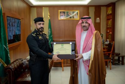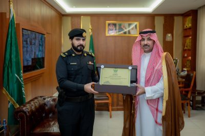 كرّم محافظ صبيا، الدكتور سلطان بن عجمي بن منيخر، صباح اليوم الأربعاء في مكتبه ،قائد دوريات الأمن بالمحافظة، المقدم علي عسيري ومساعده الرائد فهد الشهراني وذلك بمناسبة إنتهاء فترة عملهما بالمحافظة، .