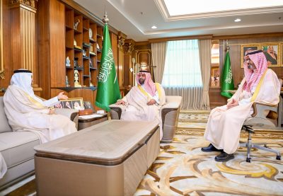 استقبل صاحب السمو الملكي الأمير محمد بن عبدالعزيز بن محمد بن عبدالعزيز أمير منطقة جازان، بحضور صاحب السمو الأمير ناصر بن محمد بن عبدالله بن جلوي نائب أمير المنطقة، في مكتبه بالإمارة اليوم، معالي وزير الصحة الأستاذ فهد بن عبدالرحمن الجلاجل، ومعالي رئيس المجلس التأسيسي للقطاع الجنوبي للتجمعات الصحية الدكتور محمد القاسم، والوفد المرافق لهما.