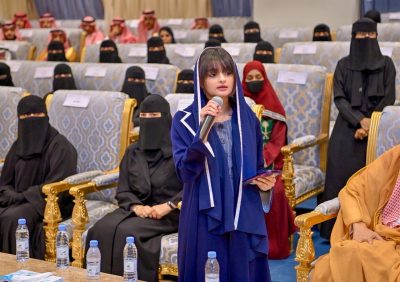 واستمع سموه والحضور خلال اللقاء إلى مجموعة من الطالبات الموهوبات من تعليم جازان، قدمن عرضًا حول رحلتهن التعليمية المليئة بروح المتعة والشغف وحب التعلم ومواهبهن وطموحاتهن، وصولًا لحصولهن على الشهادات وبراءات الاختراع والأوسمة.