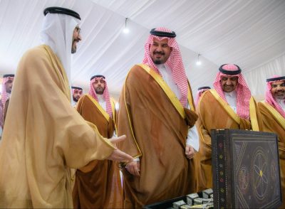 وفي ختام الحفل، كرّم سموه المشاركين والرعاة تقديرًا لمساهماتهم في إنجاح فعاليات مزاد الإبل الثاني بمحافظة الحناكية.
