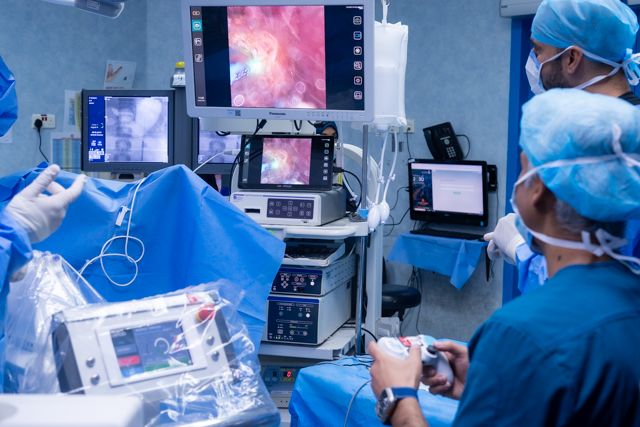 وأوضح الفريق الطبي أن تقنية (ILY®️ Robot) تُعد نقلة نوعية في مجال جراحة الحصوات البولية ، إذ تتيح للجراح التحكم الدقيق في المنظار المرن عن بُعد عبر وحدة تحكم ذكية ، مما يرفع من كفاءة الأداء ويُقلل من الجهد البدني ويُعزز سلامة المرضى .