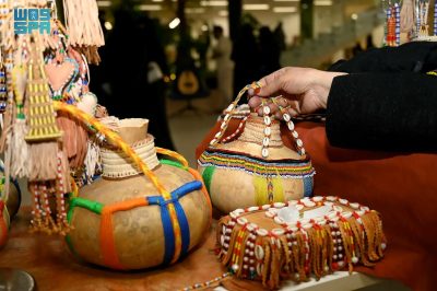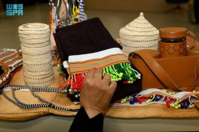 وحضرت الحرفية ساترة الحريصي من جبال الحشر لتقدّم مشغولاتها الجلدية في تجربة تجمع الفن والهوية، إذ تعيد بأناملها الماهرة بريق القطع الجبلية القديمة داخل ركنها في السوق.