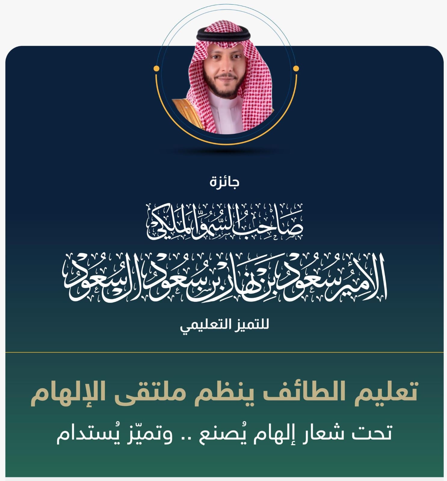 ويأتي الملتقى ضمن جهود تعليم الطائف في تعزيز التطوير المهني، ورفع كفاءة الأداء، ودعم استدامة التميز في الممارسات التربوية والتعليمية، من خلال جائزة صاحب السمو الملكي الأمير سعود بن نهار بن سعود آل سعود للتميز التعليمي مسابقة ” ملهم ”