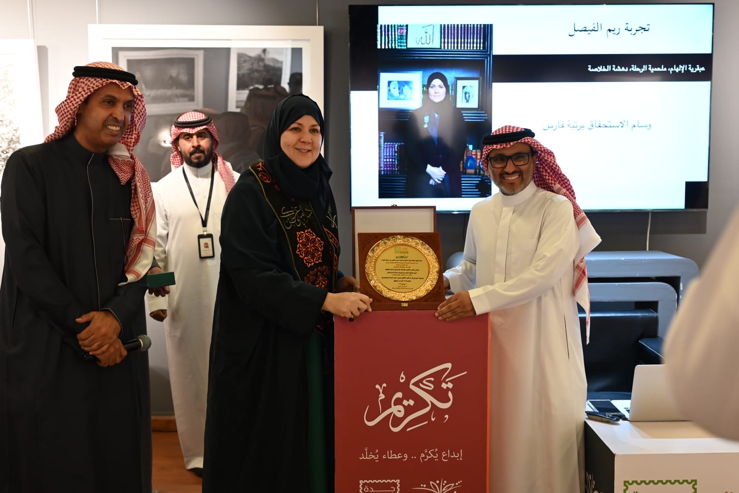 وفي ختام الأمسيّة قدّم مدير جمعيّة الثقافة والفنون بجدة الأستاذ محمد آل صبيح ميداليّة الجمعيّة الذهبيّة لسمو الأميرة ريم الفيصل تقديرًا لمسيرتها الفوتوغرافيّة الثريّة ، كما قدّم درع تكريم للناقد عبدالخالق الغامدي نظير إسهامه النقدي. وجاءت الأمسيّة امتدادًا لدور الجمعيّة في تعزيز الوعي الجمالي ودعم الحراك الثقافي تحقيقًا لمستهدفات جودة الحياة وترسيخ مكانة جدة مركزًا متجددًا للفن والإبداع.