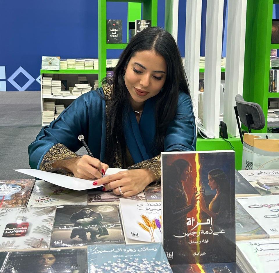 على منصة التوقيع بمعرض جدة للكتاب 2025، والذي تنظمه هيئة الأدب والنشر، وقّعت الكاتبة حنين كمال على روايتها “امرأة على ذمة رجلين”، الصادرة عن “دار إرفاء”.