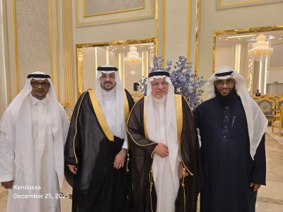 بقاعة قصر طيبة للمناسبات بجدة، على كريمة المغفور له باذن الله عصام رويجح القايدي، وبحضور عدد كبير من الأهل و الأقارب والزملاء والأصدقاء الذين شاركوا العريس فرحته، وقدموا له التهاني والتبريكات في ليلة طرزها الفرح وشعت وتلألأت بالتهاني والتبريكات ليلة اكتمل بها البدر بإكتمال أفراحها وذاعت بها البسمة في اﻷرجاء واعتلت بها هتافات اللقاء ليلة بهيجة من ليالي الأفراح والمناسبات السعيدة، وازدانت الفرحة بالفنون الشعبية التي لاقت إستحسان الجميع.