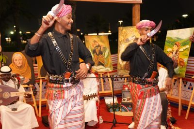خطفت العروض الفلكلورية لـ “الخطوة” و “رقصة السيف” أنظار الزوار بمختلف فئاتهم العمرية، حيث قدمت فرقة حبايب صبيا للفنون الشعبية لوحات استعراضية جسدت مهارة الأداء وتناغم الحركة مع الإيقاعات الجازانية الأصيلة. ولم يقتصر المشهد على المشاهدة فحسب، بل شارك الجمهور بحماس كبير في أداء هذه الفنون، مما أضفى أجواءً من البهجة والاعتزاز بالهوية الوطنية.